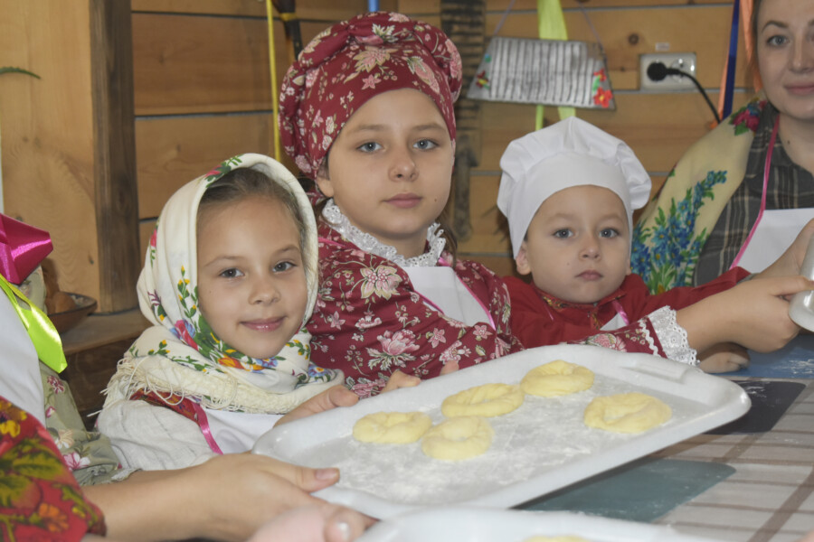 Дети и взрослые с энтузиазмом взялись за дело. Они с усердием и старанием лепили свои первые калачики. Каждый изгиб теста, каждое движение рук – все было наполнено желанием создать нечто особенное, что-то, что будет хранить тепло их семей и радость этого дня. Было видно, как загораются глаза у малышей, когда они впервые ощущают податливое тесто, и как с гордостью взрослые помогают им придать калачам заветную форму.